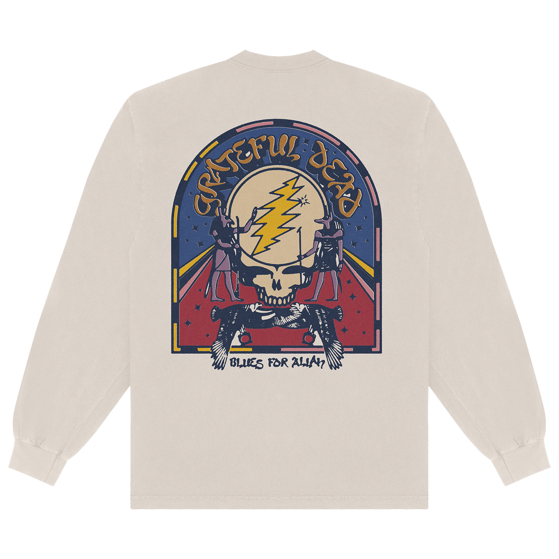Garment-Dyed Heavyweight Long Sleeve T-Shirt printed on front & back with art inspired by Blues for Allah album.