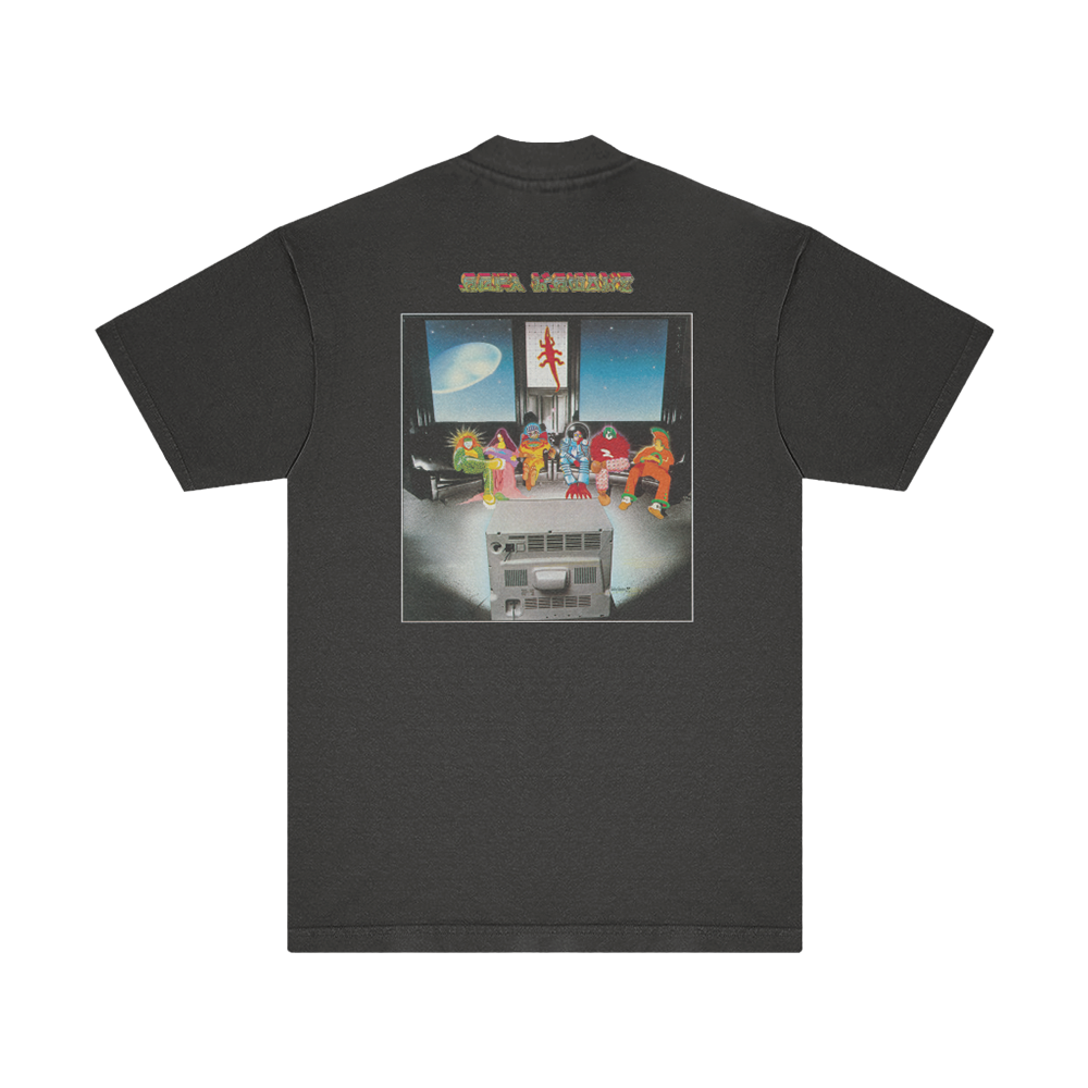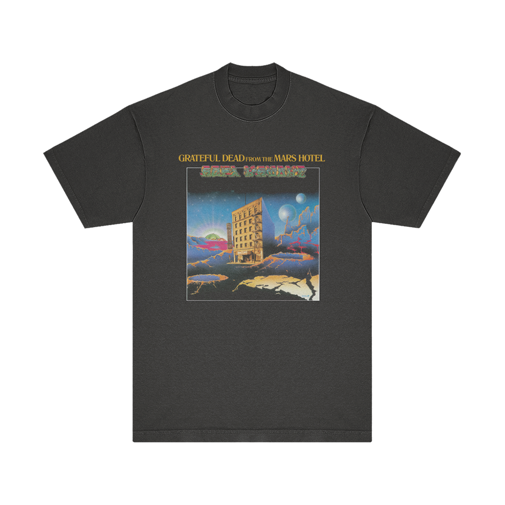 Black, unisex t-shirt with From the Mars Hotel Album art on the front and reverse