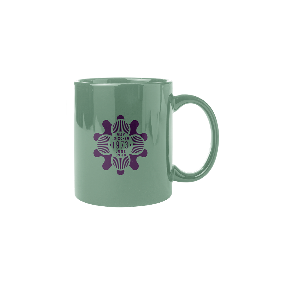 10 oz teal ceramic mug featuring Here Comes Sunshine inspired art on both sides